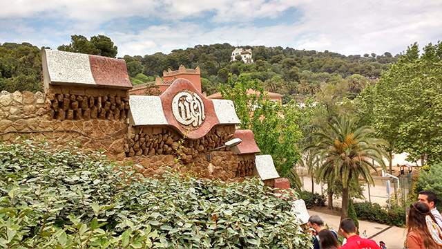 Detalle del Parque Guëll y vista de la Basílica La sagrada Familia